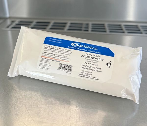 Our Sterile Pre-saturated 9" x 9" Wipers are conveniently packaged in a resealable pouch. There are 30 wipes per pouch, and 24 pouches per case.